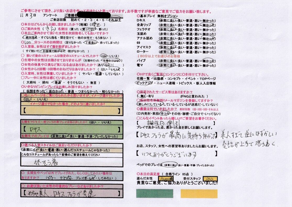 透明感抜群の清楚系素人M嬢が入店!!黒髪現役OLが溜まりに溜まった性欲を発散するために自らビンビン伝説の門を叩いてくれました(#^^#)ご奉仕大好きの超絶敏感で淫乱!ディープキスが一番好きで、ずっとしながらお互いサワサワ&ペロペロしていたい!そう言った彼女の瞳は本物でした(笑)しかも!柔和で綺麗なオッパイをサワサワされると可愛い声で喘ぎまクリスティーヌ♪♪男性の感じている顔を見ると興奮してしまい、プレイもエスカレート!責めてる時でも愛液があふれ出すそうです(笑)また、Mっ気も強く責められるのが大好き!玩具でイジメられたい願望もあり!素人系の女性ですが、しっかりエロい雰囲気があって大興奮すること間違いなし!濃密な時間をお約束します!!現役美白OLと戯れませんか!?是非ご予約お待ちしております♪